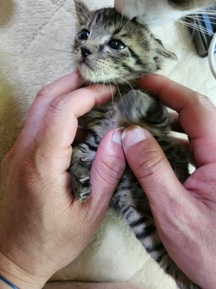 小さな暴れん坊のエっちゃんは足が大きいので、そのまま成長すれば大きな猫になりそうです。