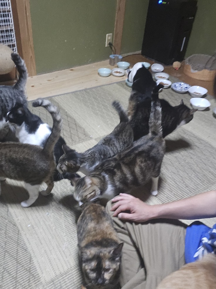 中には普段中々出てこない子が出て来たり、抱っこが嫌いな子が抱っこに来たり、あまり慣れていなかった子が毎晩布団に潜り込んで来たり、猫たちも少しの環境の変化を感じ取っていたのかもしれません。