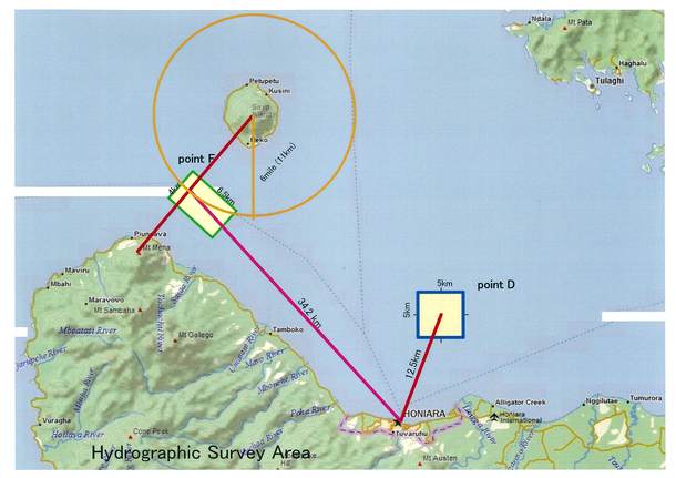 従来の地点(D)も新たな地点(F)も、生存者と現地の方の証言、米国による資料が根拠であり、共に信憑氏は高いものと判断し、期間や費用には変更を加えることなく、従来の地点の探索範囲に新たな地点を加えることで、より発見の可能性を高めてまいります。