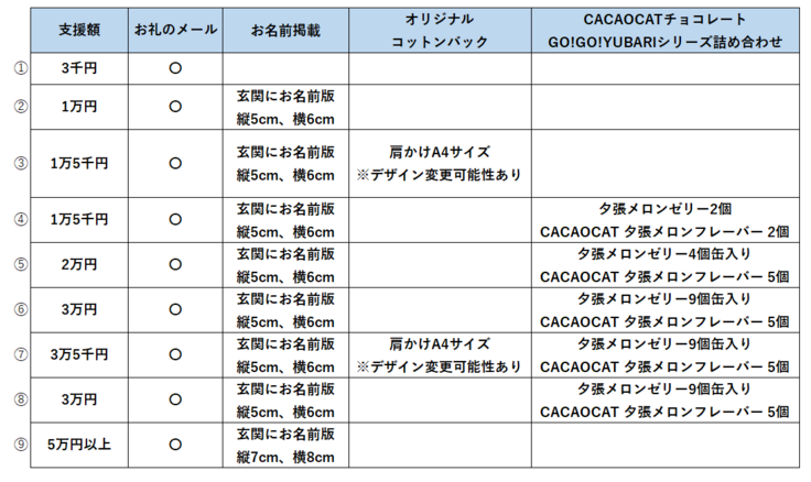 ご支援いただいたお礼として、以下のリターンをご用意しております。