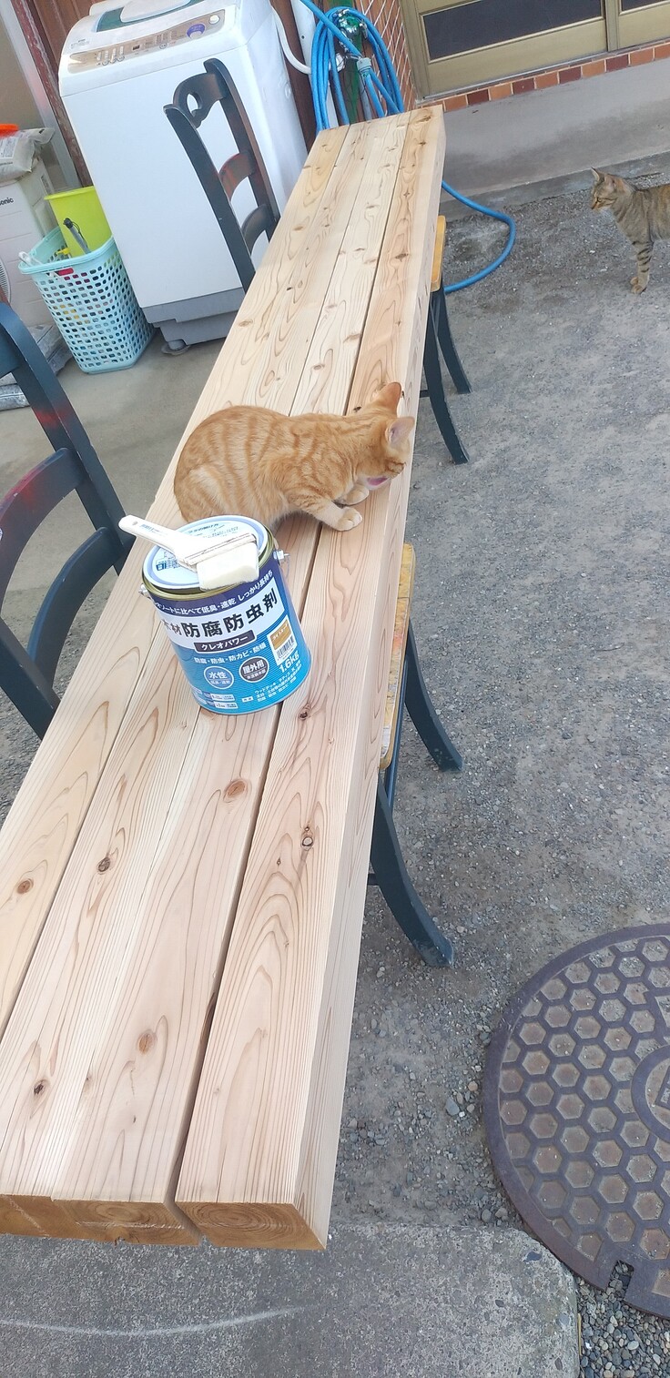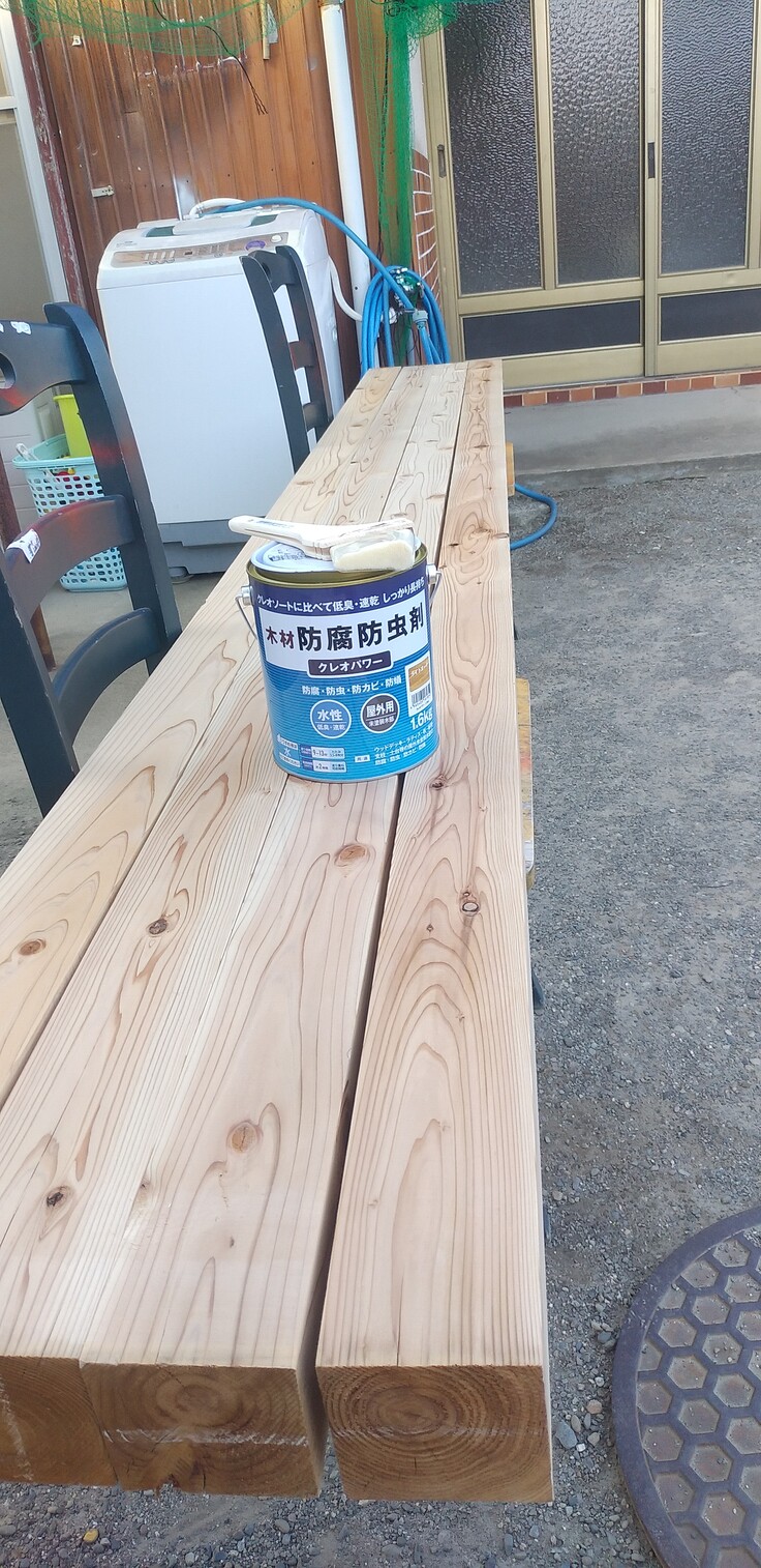 今日はこの木に防腐剤を塗りました😌