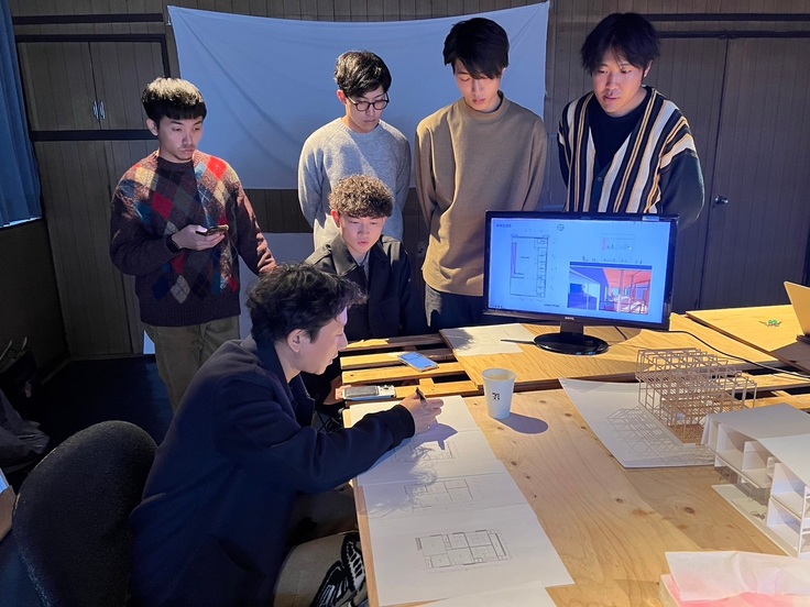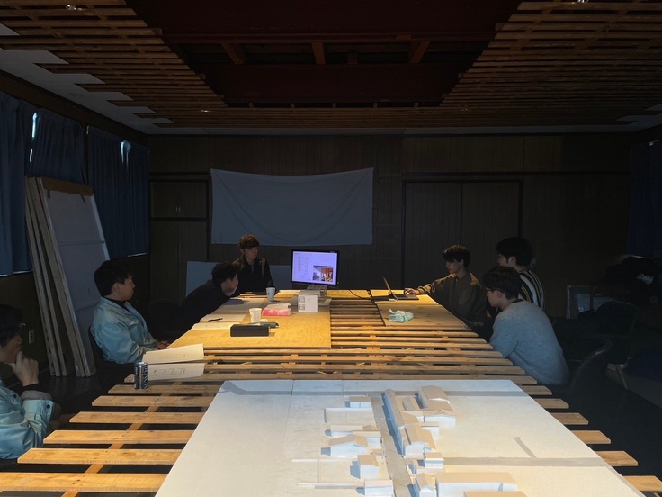 今回の提案では、これまでの調査や設計をまとめ最終提案に向けて講評をいただいてきました。自分達の設計意図を図面やパース、イラスト等を使用しながら提案を行いました。提案内容に対し、学生にはない現場からの目線や設計意図と手法の関係性について等たくさんのアドバイスをいただきました!建築的操作や平面計画、立面や窓に関してなどさらに設計を深めるお話をしていただきました。