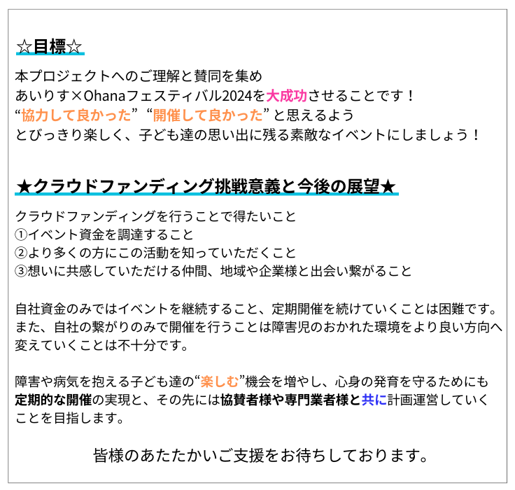 皆さまからの想いを無駄にしないよう努めてまいりますので、残り僅かではありますが、引き続きのご支援のご協力、そして、拡散・広報のご協力のほどどうぞよろしくお願いいたします。