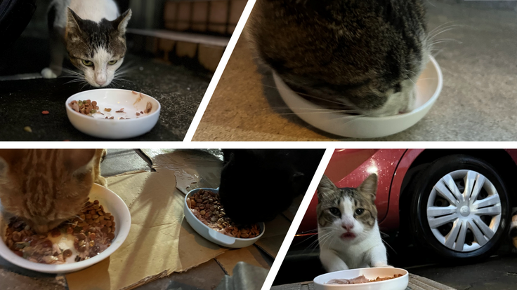 雨が止んだ合間、無事、今日のご飯をあげることができ、ホッとしました。