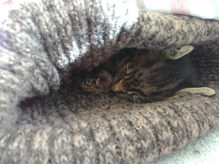 残念ながら、3匹のうちの1匹は、まだ自力で離乳食を食べられず、体温が低いため、懸命なお世話を続けています。