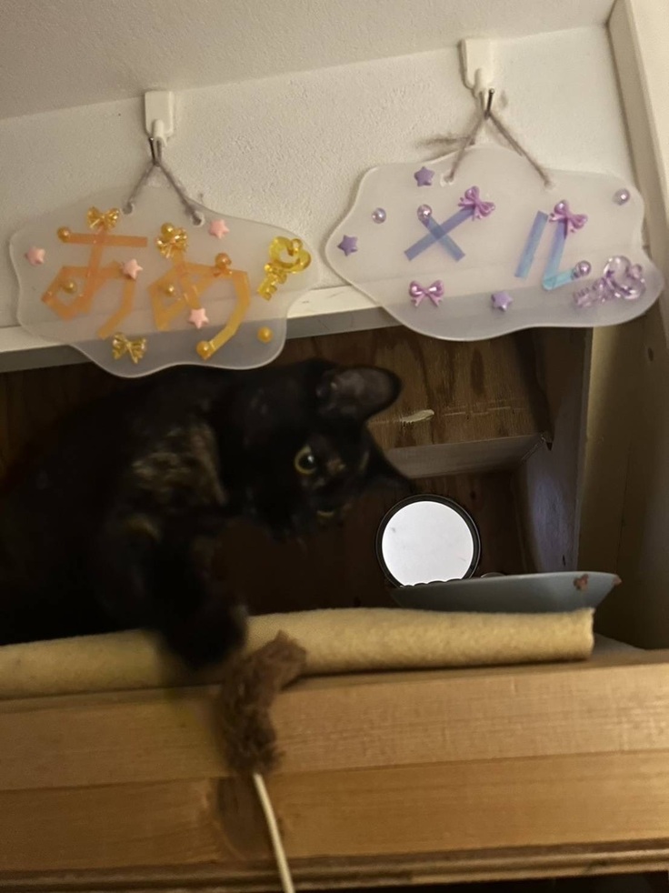 手作り看板まで付いた、あめだまちゃん専用スペース、そして家中自由に飛び回って、幸せな新しい生活が始まりました。