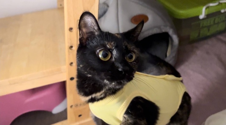 少し前に保護猫ファームを卒業した、サビ猫のあめだまちゃん。