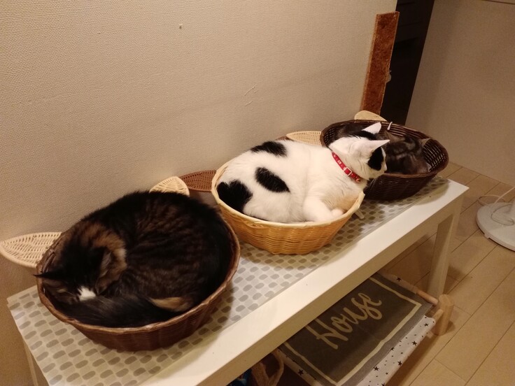 保護猫3匹と保護犬1匹と家族4人で暮らしています。