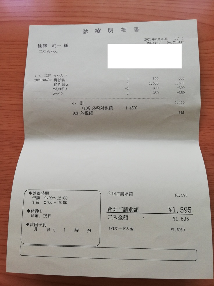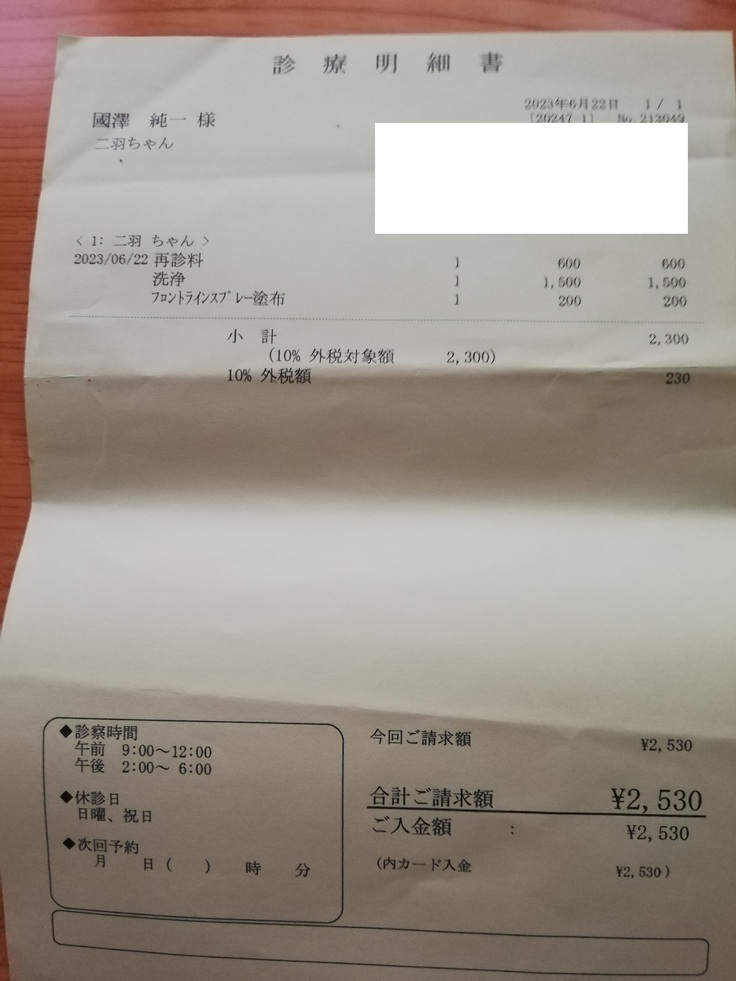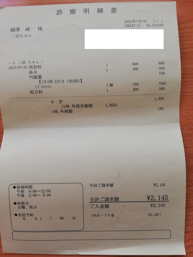 2023年07月27日 診断書(ワクチン除く) 3300円