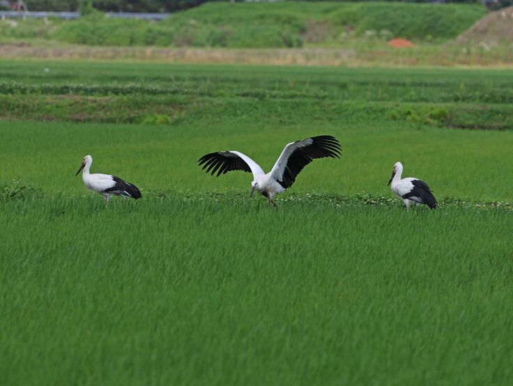 近年では、 人工繁殖や放鳥による野外繁殖など、徐々にコウノトリの数が増えてきました。国富地区でも、当時の住民の気持ちを受け継ぎ、平成23年(2011年)にコウノトリを呼び戻そうと地元団体が立ち上がりました。