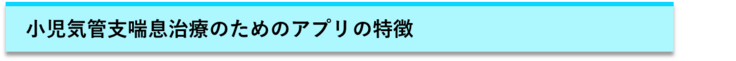 - 「ならば、新しい小児ぜん息アプリは不要ではないか?」と思われるかと思いますが、それらを使って小児ぜん息の発作が減ったというデータは、日本では現時点において認められておりません。