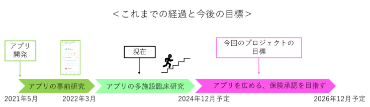 ■ 本プロジェクトは現在多施設臨床研究中であり、その結果・経過によっては本プロジェクトを遅延あるいは中止とせざるを得ないアプリの開発上の課題が見つかる可能性があります。また保険収載となるためには、本アプリが医療アプリとして薬事承認が必要となりますが、臨床研究の結果等によってはその承認等が得られない可能性があります。