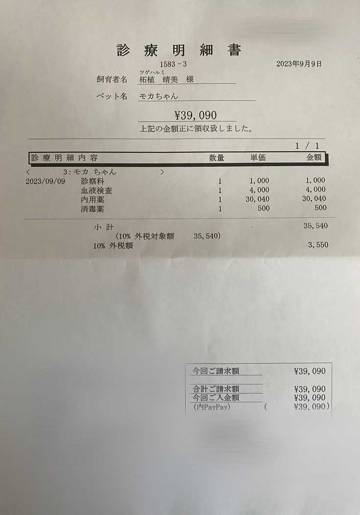 ※ 直接支援していただいた支援金は返金せず全てモカの治療費に充てさせていただきます。