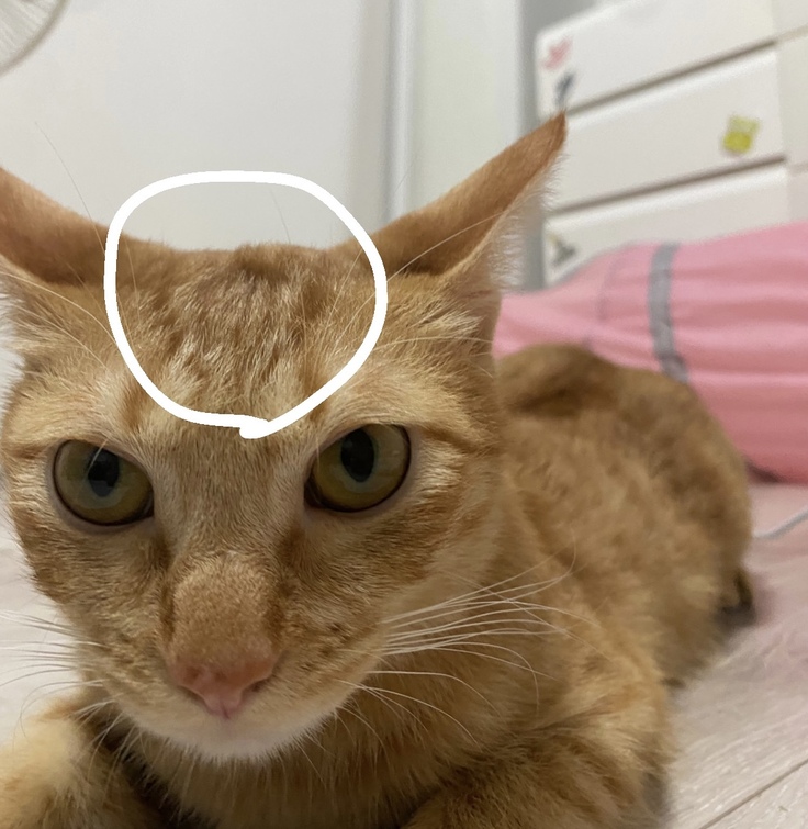 今日仕事から帰りモカを見ると、頭の上にコブのようなものができていました😣💦