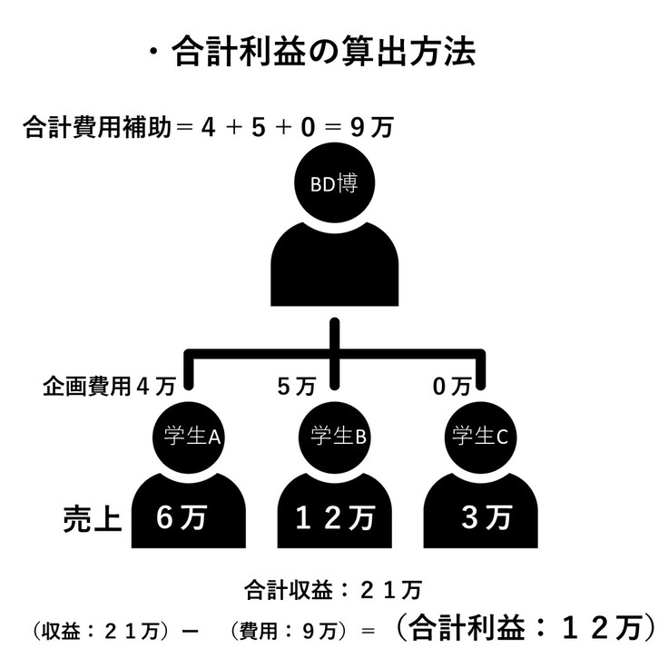 具体的には企画にかかる費用をBD博が初めに支給し、各企画で売上を出してもらう。