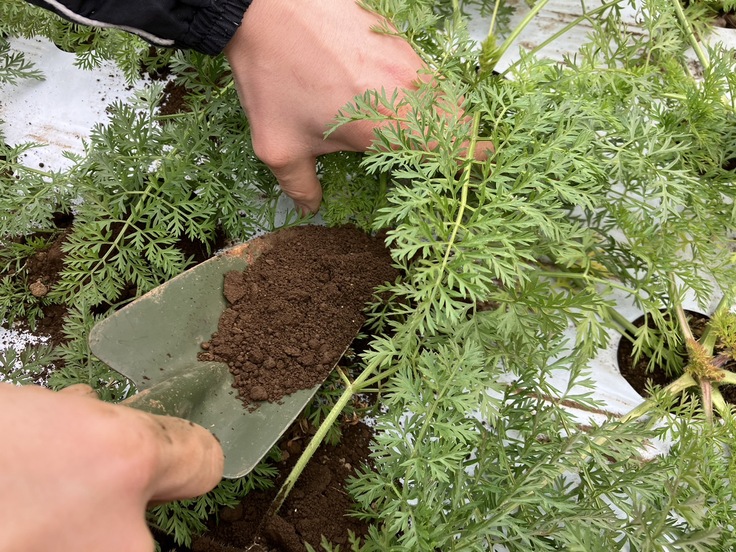 株元に土をかけることで根が露出して着色するのを防ぎ、寒害対策にもなります。