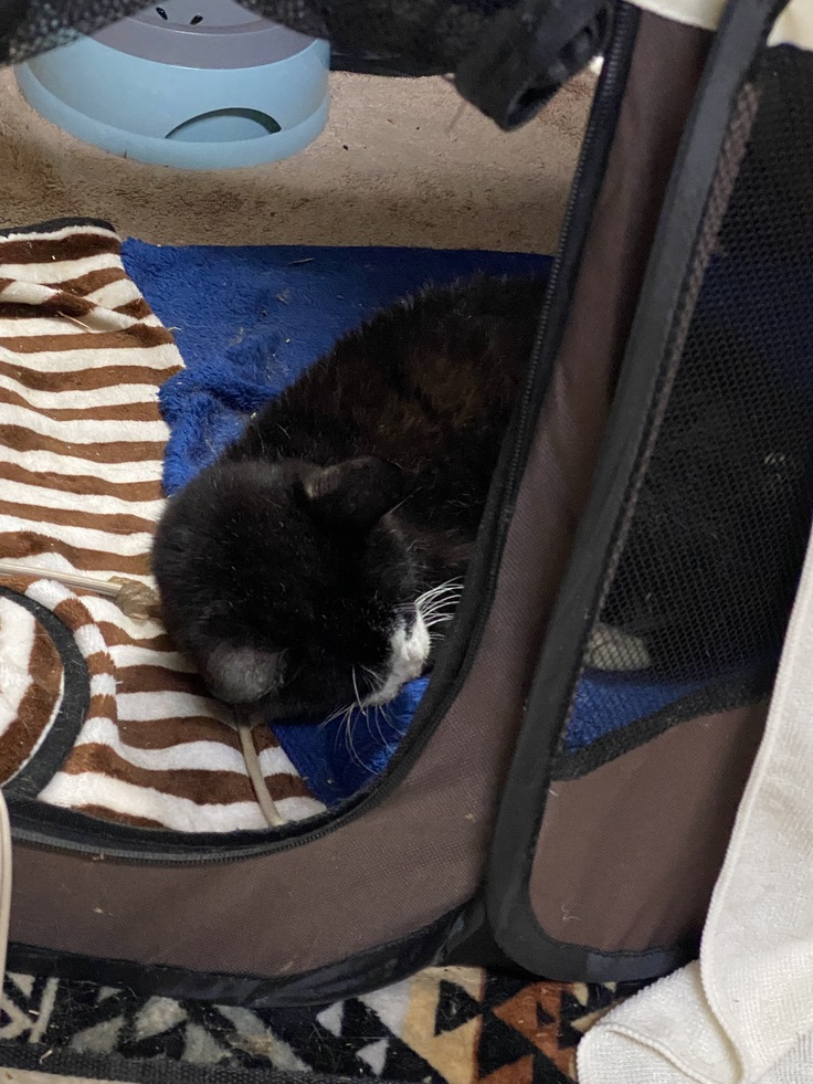 以前はガリガリで背骨も見えてる状態でしたが、それもありません。保護時は1.5キロしかなかった体重も、前回の受診では2.3キロでした。目指すは2.5キロでそのまま保てたら良いと主治医もおっしゃっていました。
