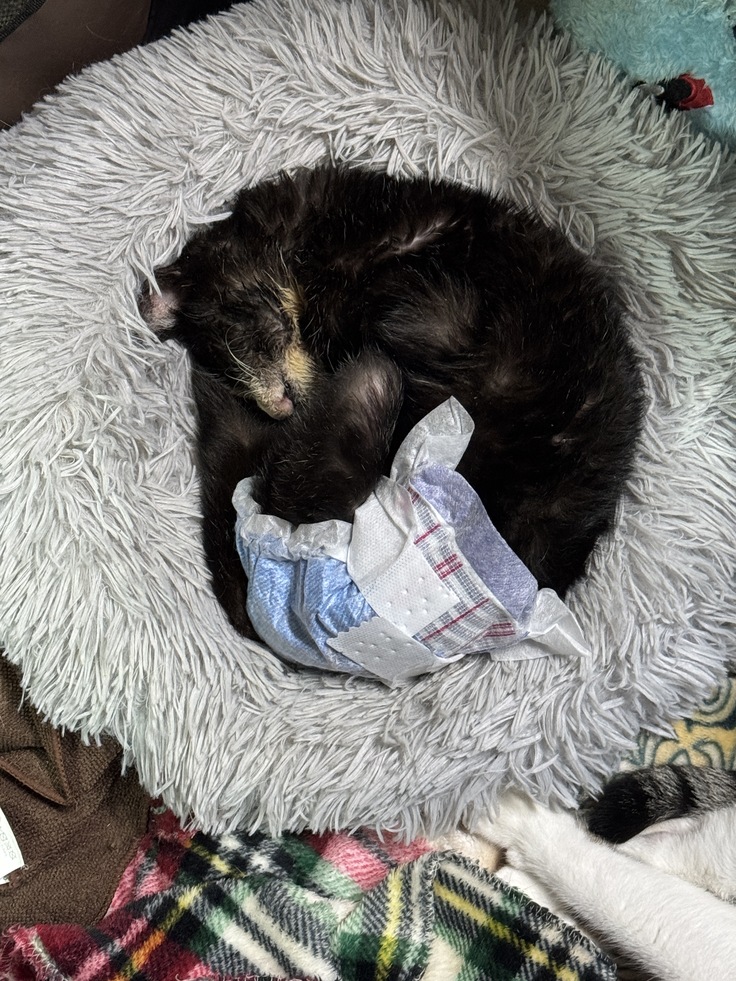 保護した当初は長くは持たないかもと思ってました。その後も何度も危ない状態を乗り越え、今は元気に過ごせてます。