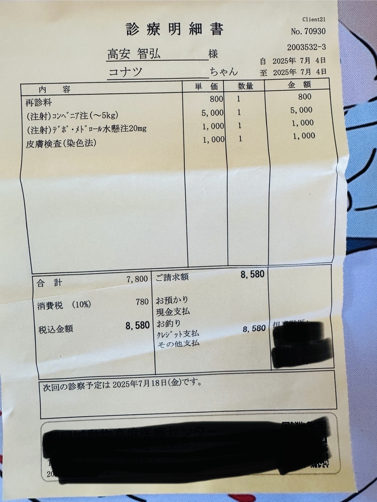 注射で2週間はもつようなので、また2週間後に経過をみるようです。それで今後の対応が決まります😭