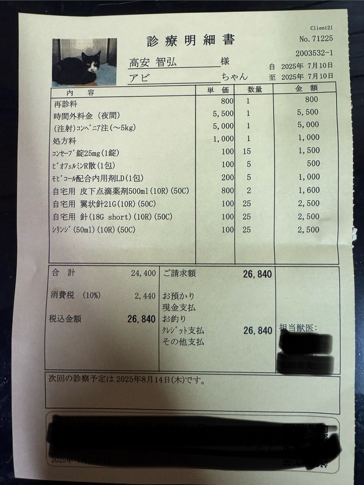 今回は排尿時にまだ鳴く時があるので、あと一回抗生剤を打ちました💦