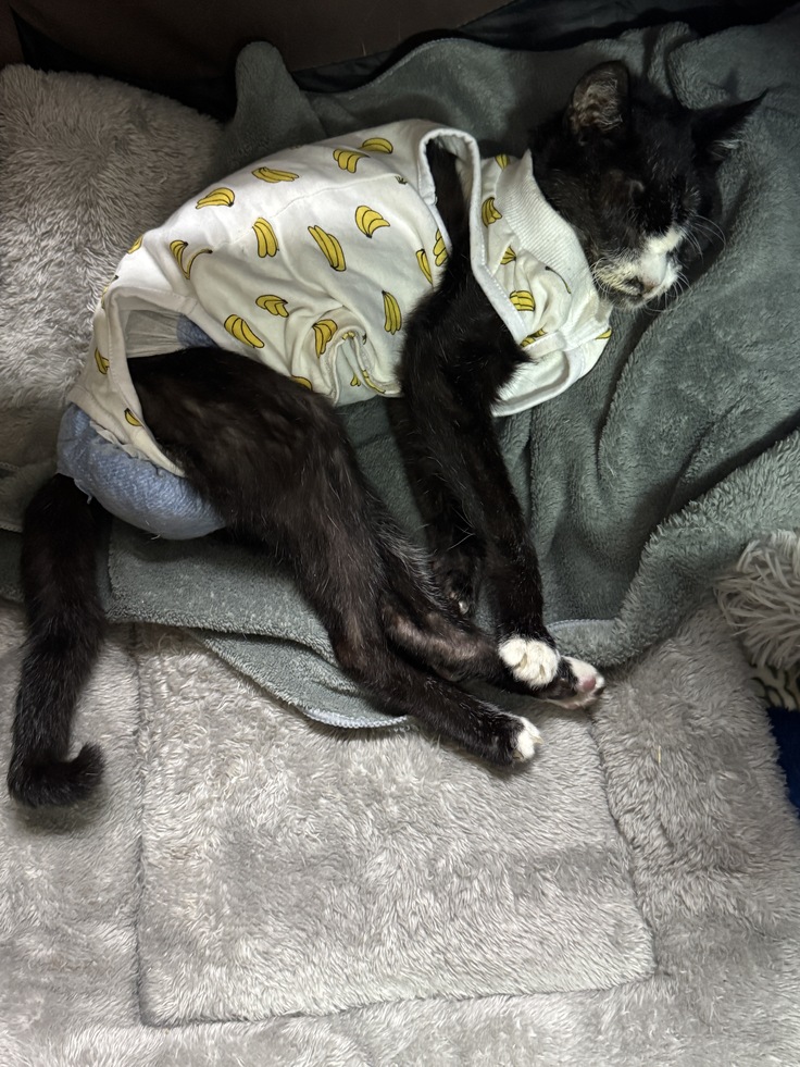 身体を温めた方が良いとの事で、先生から洋服着せると良いですよとアドバイスがあったので、注文して届くまでの間、以前コナツが使ってた術後服を着させました。