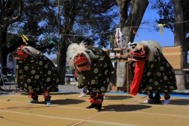 ★毎年、春の祭典で神楽保存会や巫女舞会の会員により、巫女舞、獅子舞、オロチ舞などが奉納されます。(ゴザとシートを敷いて、青空舞台を舗設しております。)