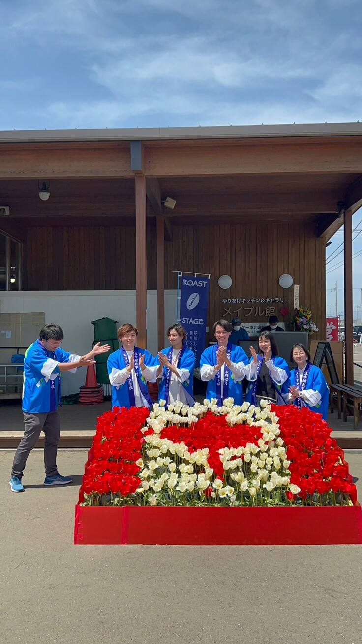 In May 2023, we participated in the Yuriage Harbor Morning Market Maple Pavilion's 10th anniversary event, producing a Canadian flag using 650 fresh tulips, as well as Canadian and Japanese flags with tulip petals dyed on them. These activities also received a lot of media coverage.