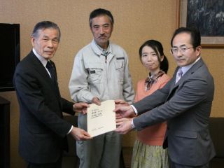 可知前恵那市長に手渡した「えなの森林づくり実施計画」