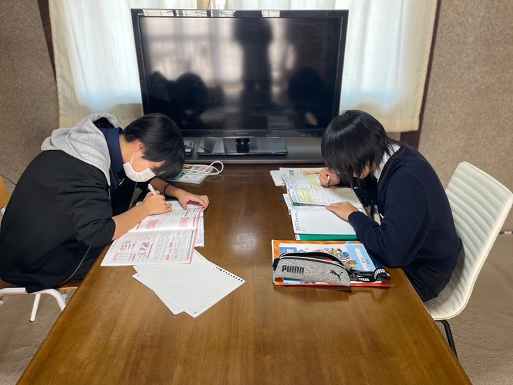 ①中学生が勉強していると、「私も!」と小学生も勉強し始める。