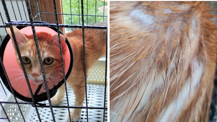 いつもお世話になっている保護施設の獣医に診ていただいたところ、カビが原因と判明。