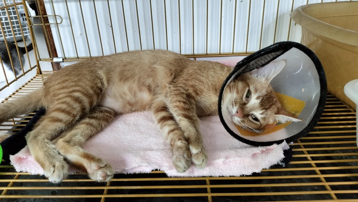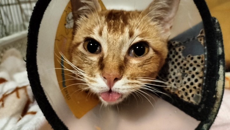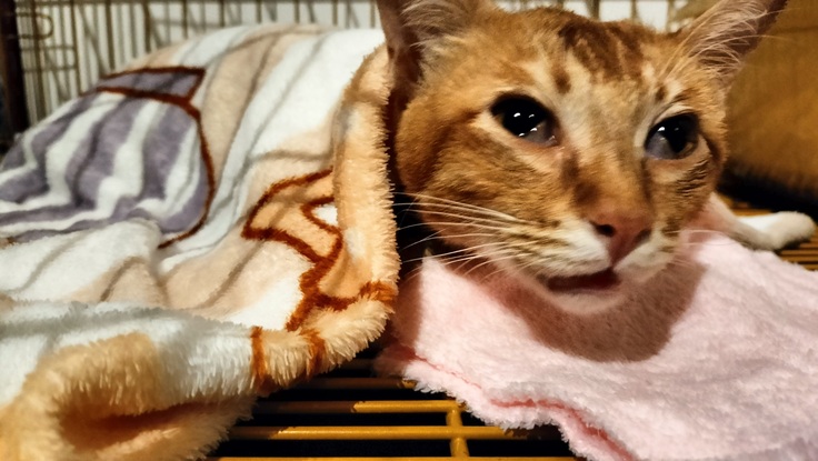 トトくん2週間前に去勢手術をし先週患部が開き、今日は縫合手術のため朝9時頃に保護施設へ