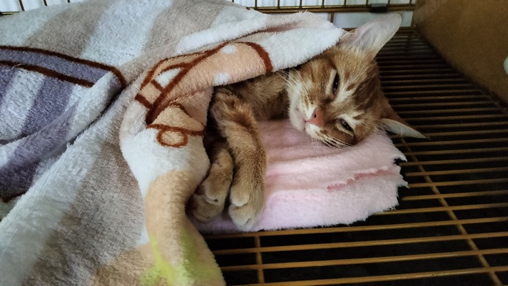 帰ってきてから何度か声に反応して瞼は動きましたが、ずっと手足が冷たくて身動きせず中々麻酔から醒めてくれませんでした。