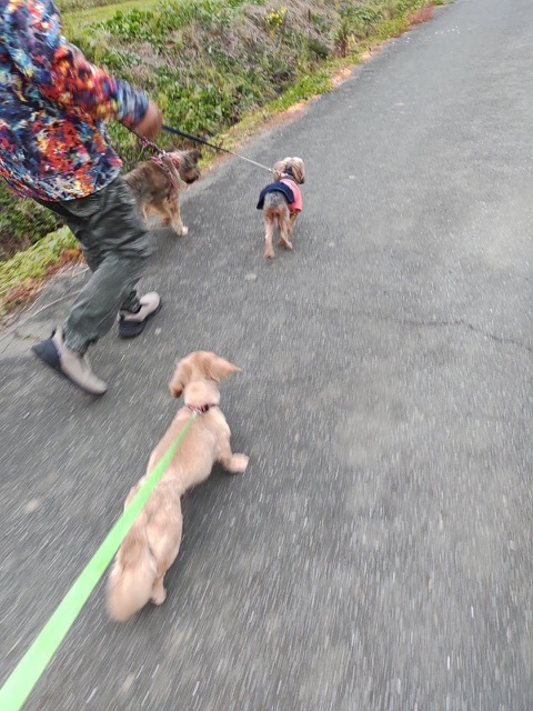 散歩は3頭で出来たんです!レオがグイグイいくもんだから時折ぽにこ唸る(笑)