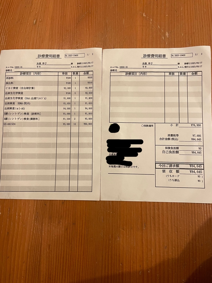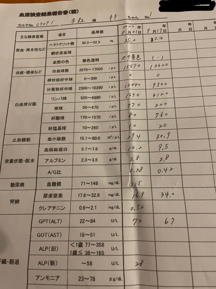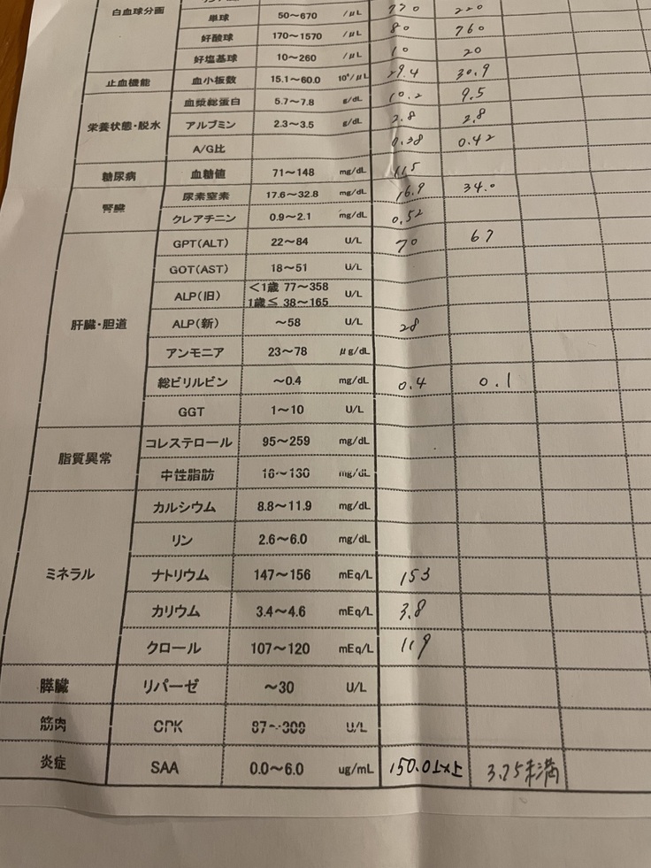 右肺がまだ少ししろいけど、3週間前より劇的に良くなり、採血も貧血もSAAの数値もびっくりするくらい🥹