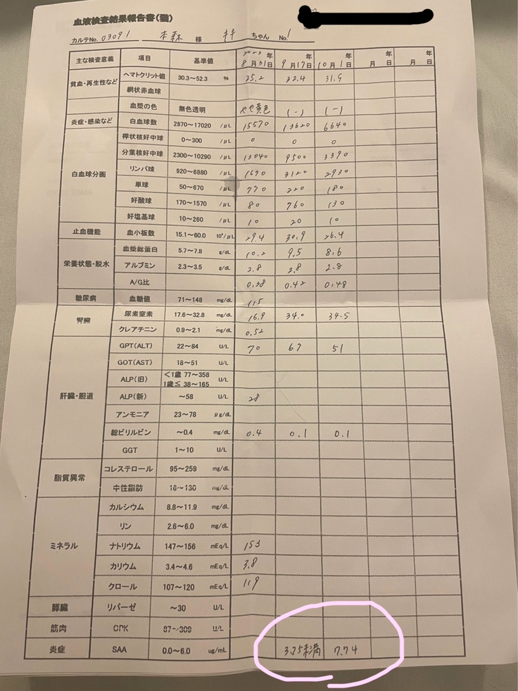 写真がぼやけていたので、検査結果等もう一回投稿します。すいません。