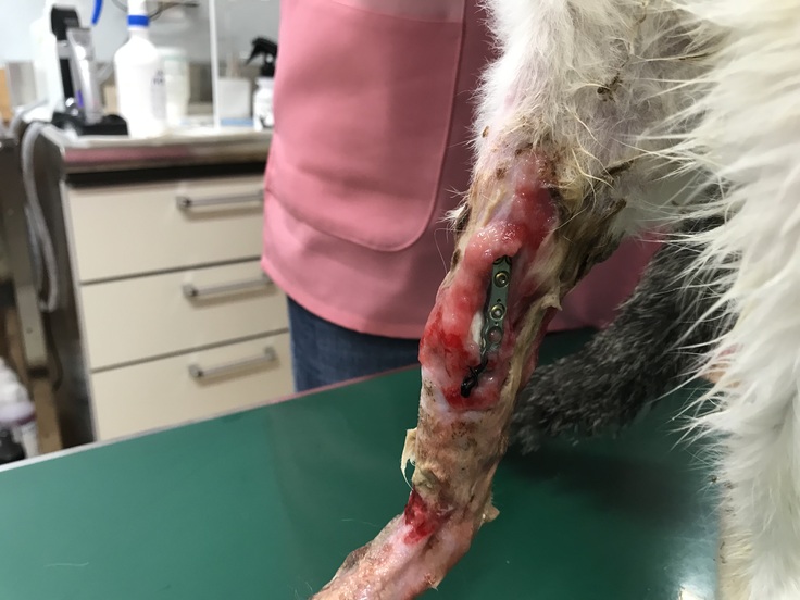 手術は、上手くいきましたが、骨がなかなか繋がらなくて、チビが動いてしまうために骨を固定しているプレートがズレて、再手術を受けました。