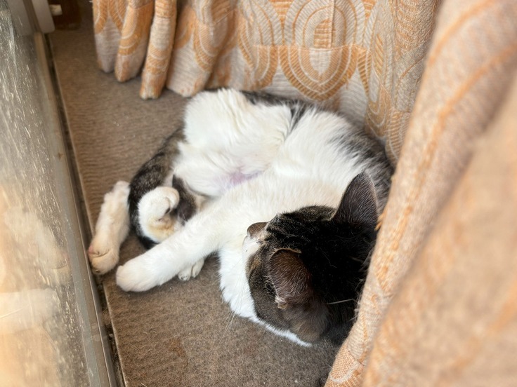少し歩く回数が増えては居ますけど、今日も窓際のカーテンの裏でじっとしています。