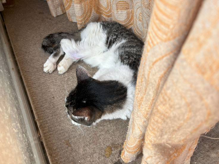 天気が良い今日もカーテンの裏に隠れるように窓際でじっとしています。