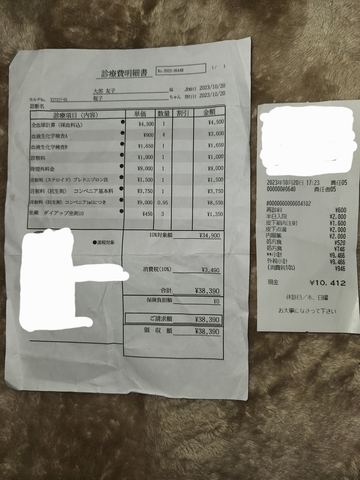 今後お薬代、3ヶ月後のMRIの検査が必要です。