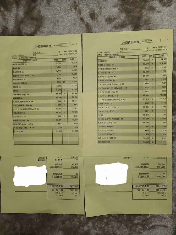 排泄も上手く出来ずソワソワ興奮状態が続きました。夜は1分ぐらい続くてんかん発作が1時間に数回続きました。座薬を入れて夜間病院に連れて行きましたが症状は改善されず、朝一で地元のかかりつけ病院に行っても夜にまたてんかん発作が起きました。約1日と半日間、桜子は薬も効かず寝れなくてかなり辛かったと思います。夜中興奮状態での長距離の移動が桜子の負担になるか心配でしたが、放射線治療をした埼玉の病院に連れて行く事にしました。