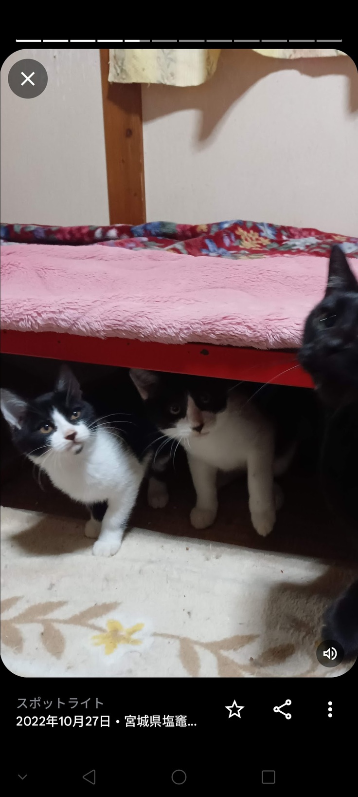 去年保護した真ん中の大地君、いくら探しても、呼んでも返事もしません、近くにも居ない様です😭 外に出たことが無いので、帰れるかどうかが心配です💦