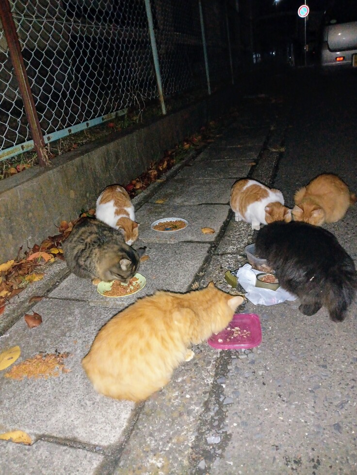 毎晩野良猫達の餌やりに行っています!