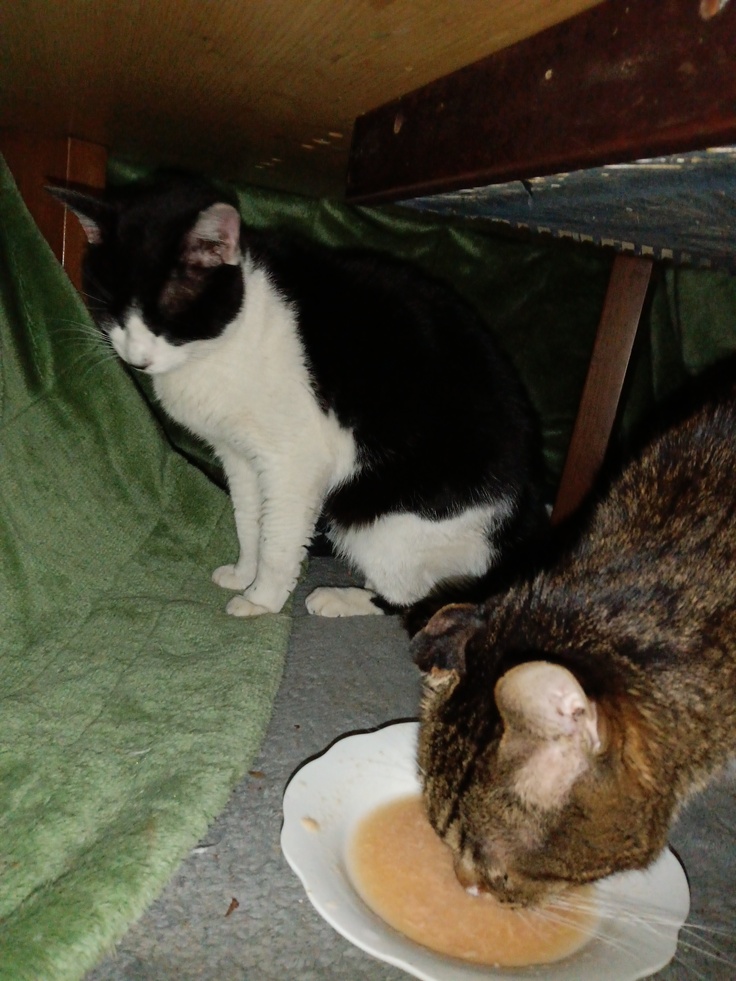 ガリガリになって帰って来たのに、すぐコタツの中に入って行きました、ご飯を用意したら、チビ太兄ちゃんに食べられています😢 よくぞ生き延びてくれました😭 月曜日に届けを出している保健所と警察署に連絡入れたいと思います。ありがとうございました🙇やっと寝れます、明日は仕事です!