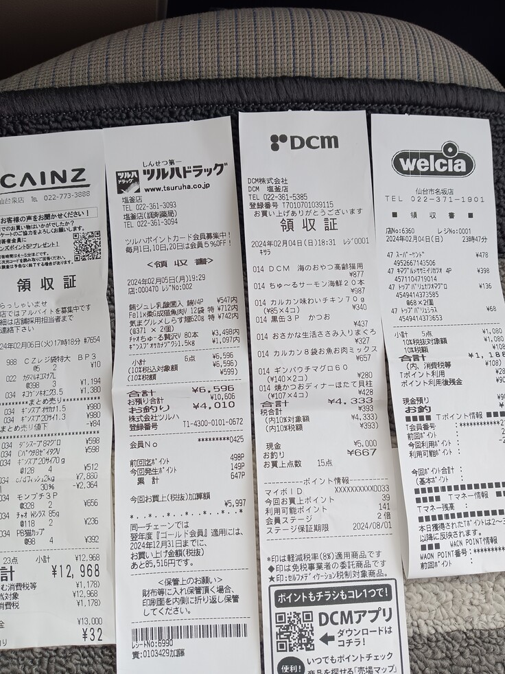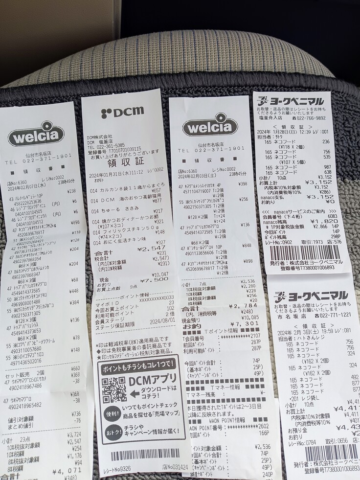 猫ちゃん達のフードの合計金額が出ました。よろしくお願い致します🙇