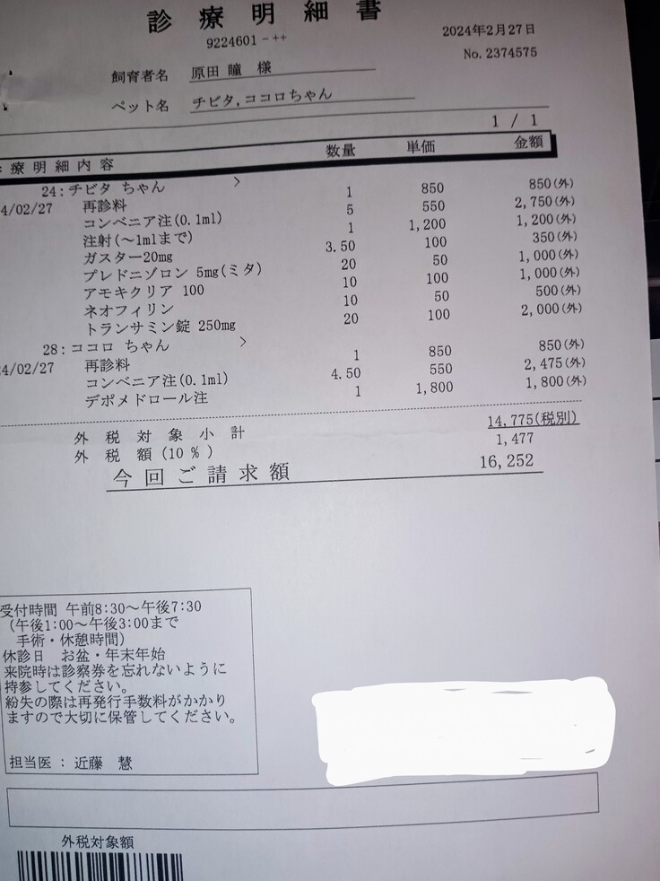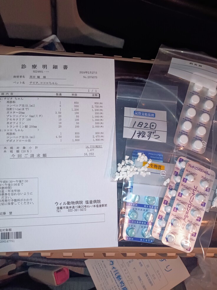 チビ太と口内炎のココロの治療が終わりました2匹共に体重が増加していました😀皆様のお陰樣です🙏