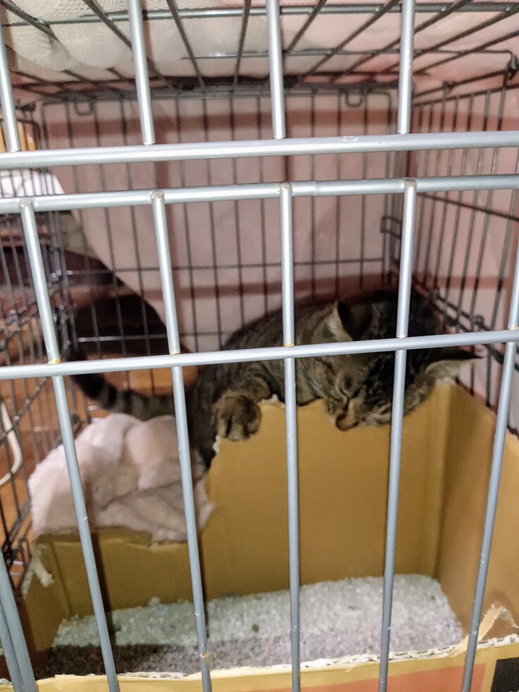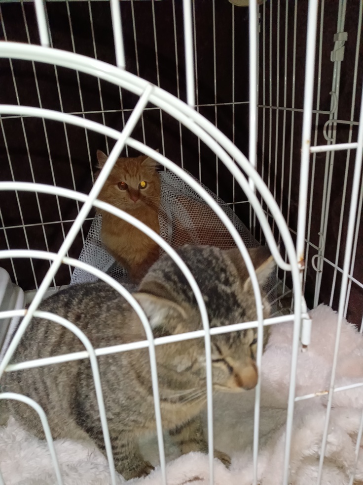 やっと小トラが出て来てくれましたので、一昨日に捕獲しました。ずっと鳴きっぱなしで、トイレのダンボールを壊しまくってます🥶最後にはダンボールさえ無くなりました🥴今日の朝方に茶トラの姉妹を捕獲出来ました💦