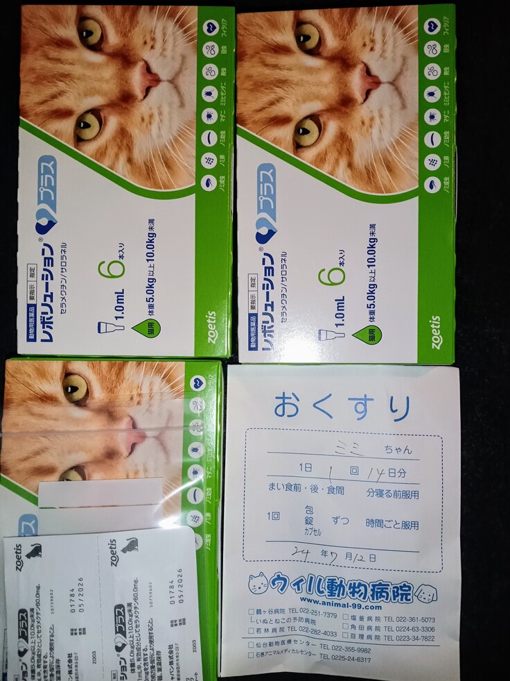 皆様からの支援金で駆除薬のレボリューションを買いました🙏先月付けられ無かった子達に今回成功しました