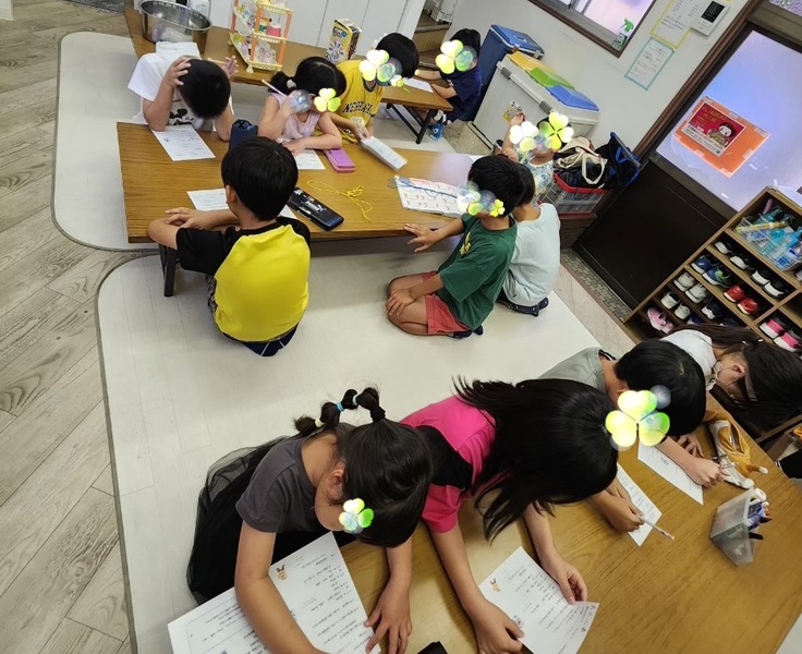 現在、3つの小学校から11人の児童が学校帰りに登所し、保護者のお迎えまでの時間を楽しく過ごしております。異年齢集団だからこそできる関わりを大切にしており、学年が上の児童が下の児童の学習支援をし、一緒にけん玉やブロック遊び、読書などをしながら、きょうだいのように成長をとげております。学童保育所では長期休業やイベントごとに、ダンスや劇の発表、けん玉の技の披露をはじめ、様々な取り組みを実施しており、子ども達は日々の宿題と遊びだけでなく、ダンス練習、けん玉の技習得に楽しく取り組んでいます。