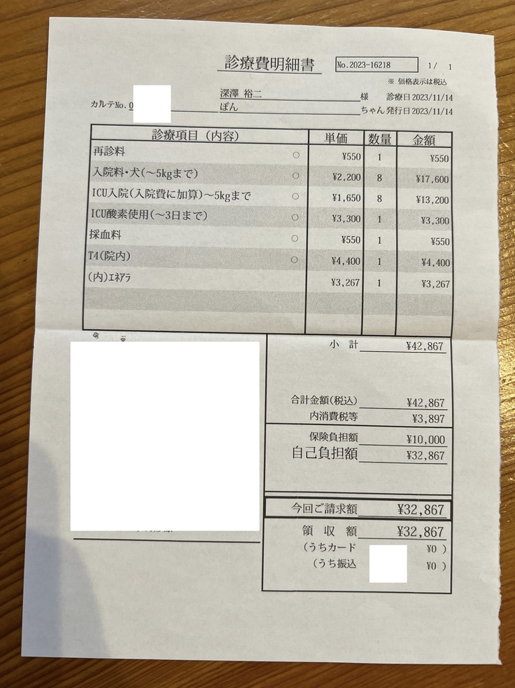 病院や担当医の名前はマスキングすることが必須なのでマスキングしてあります。