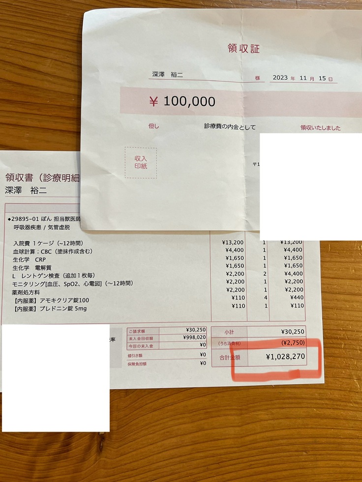 これから手術をする方などの参考に9月からの入院治療手術総額